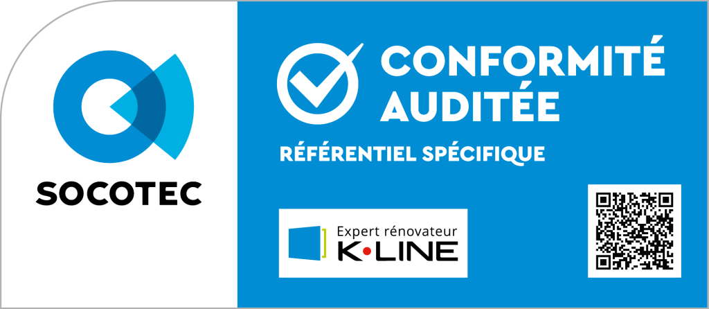 Le réseau Expert Rénovateur K•LINE a obtenu la labellisation « Conformité Auditée SOCOTEC », délivrée par un organisme indépendant et leader du contrôle technique du bâtiment, garantissant un niveau d'exigence au-dessus des standards du marché. Chaque année, les experts SOCOTEC auditent les partenaires selon un référentiel spécifique, évaluant l'expérience des équipes, l'organisation des chantiers et la qualité de pose conforme au DTU. Cette labellisation offre aux clients la garantie d'une intervention certifiée par un tiers indépendant, assortie d'une garantie exceptionnelle de 20 ans sur les produits et la pose.