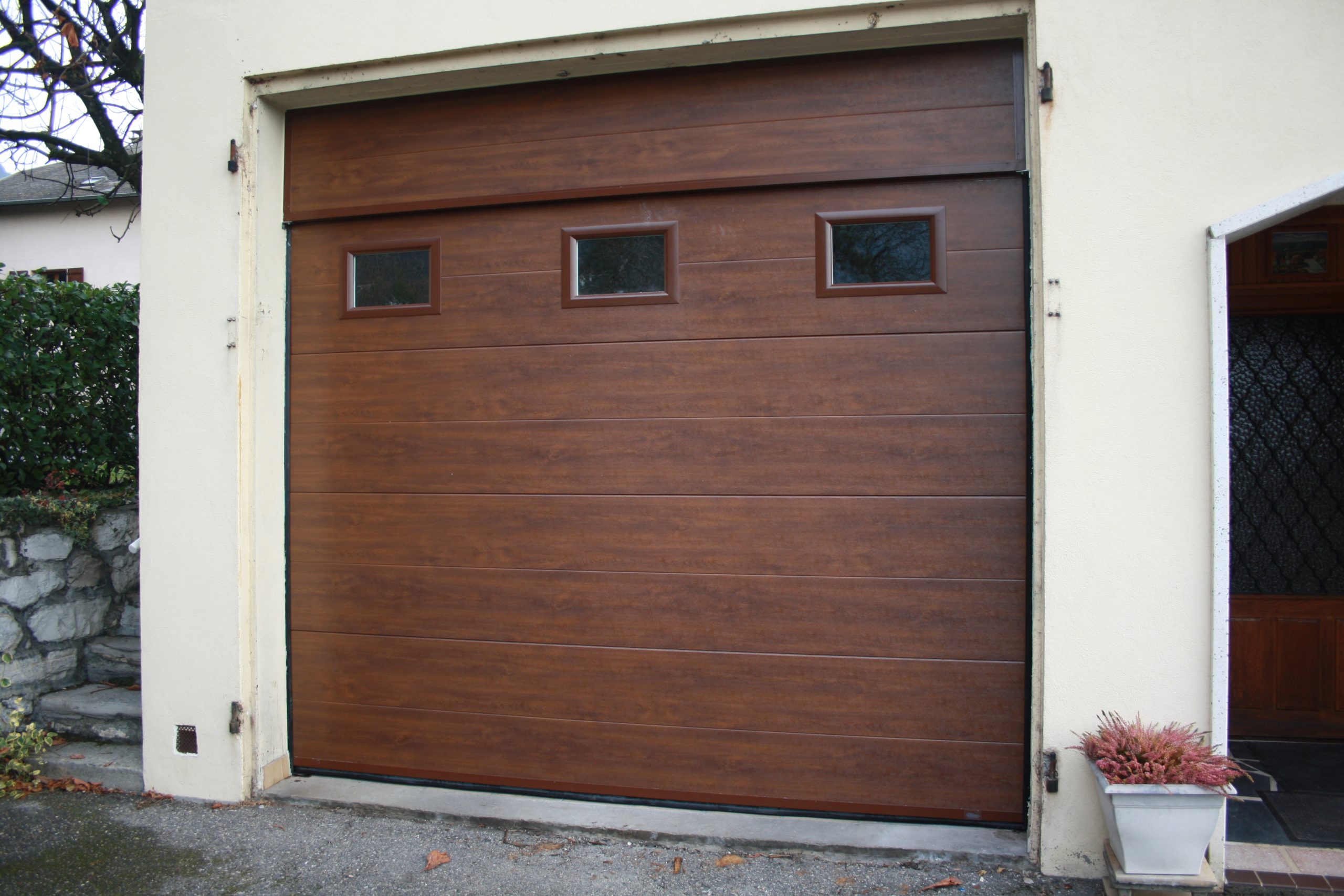 – Porte à ouverture latérale : elle coulisse le long de votre mur, le plafond reste dégagé, l’idéal pour les garages bas ou en sous-sol.