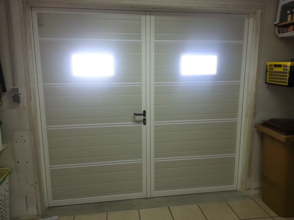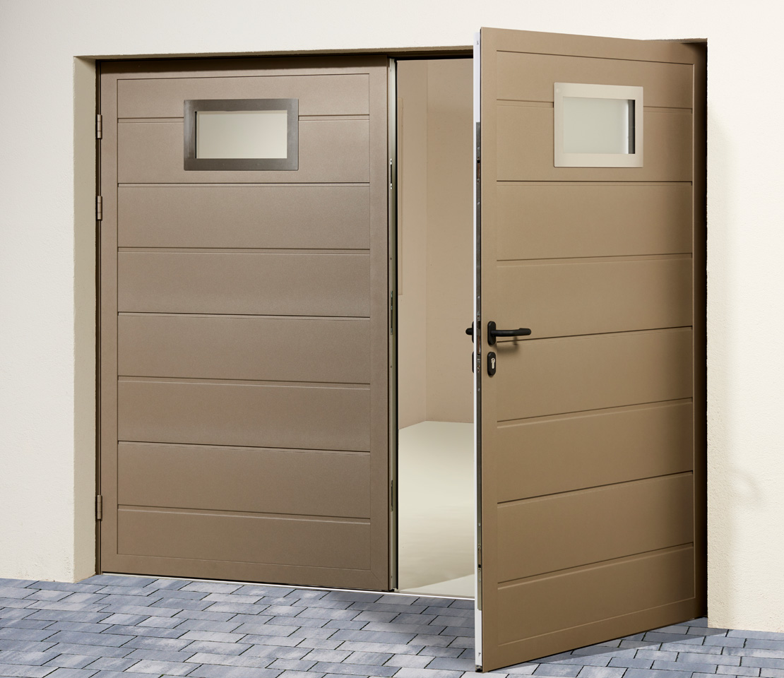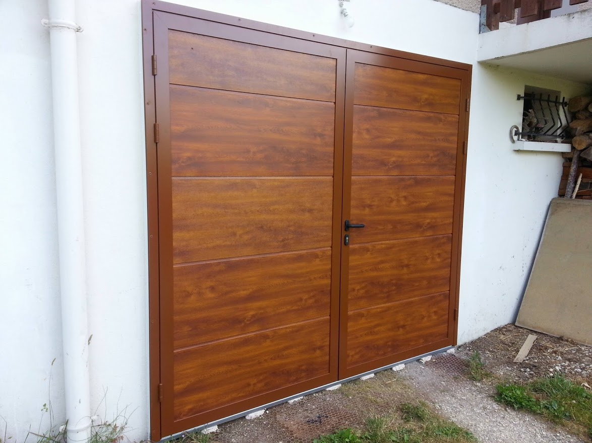 Pratique, la porte de garage battante est composée de deux vantaux, dont un semi-fixe.